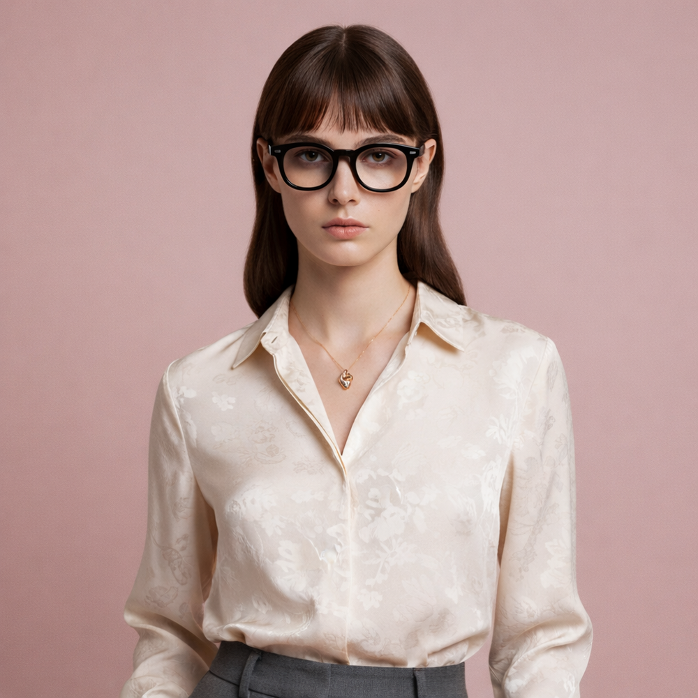 뿔테의 기본인 아넬형쉐입에 단조롭지만 미니멀한 느낌의 템플디자인으로 데일리로 착용하기 좋습니다.